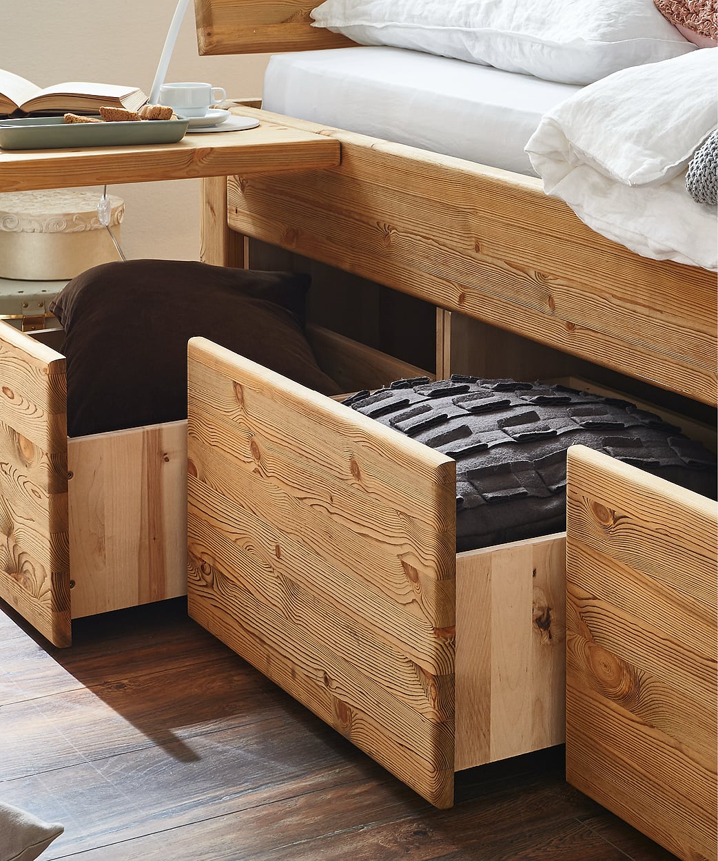 - Optional mit praktischen Schubladenmodulen erhältlich, schafft zusätzlichen Stauraum unter dem Bett