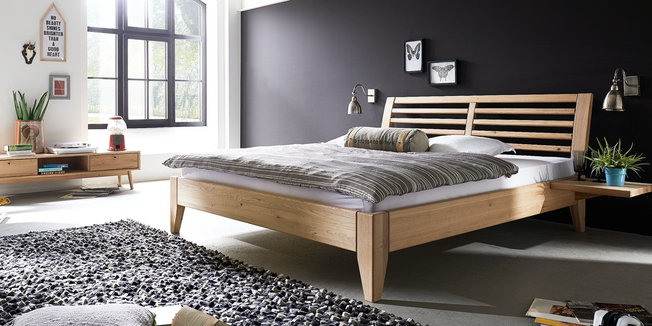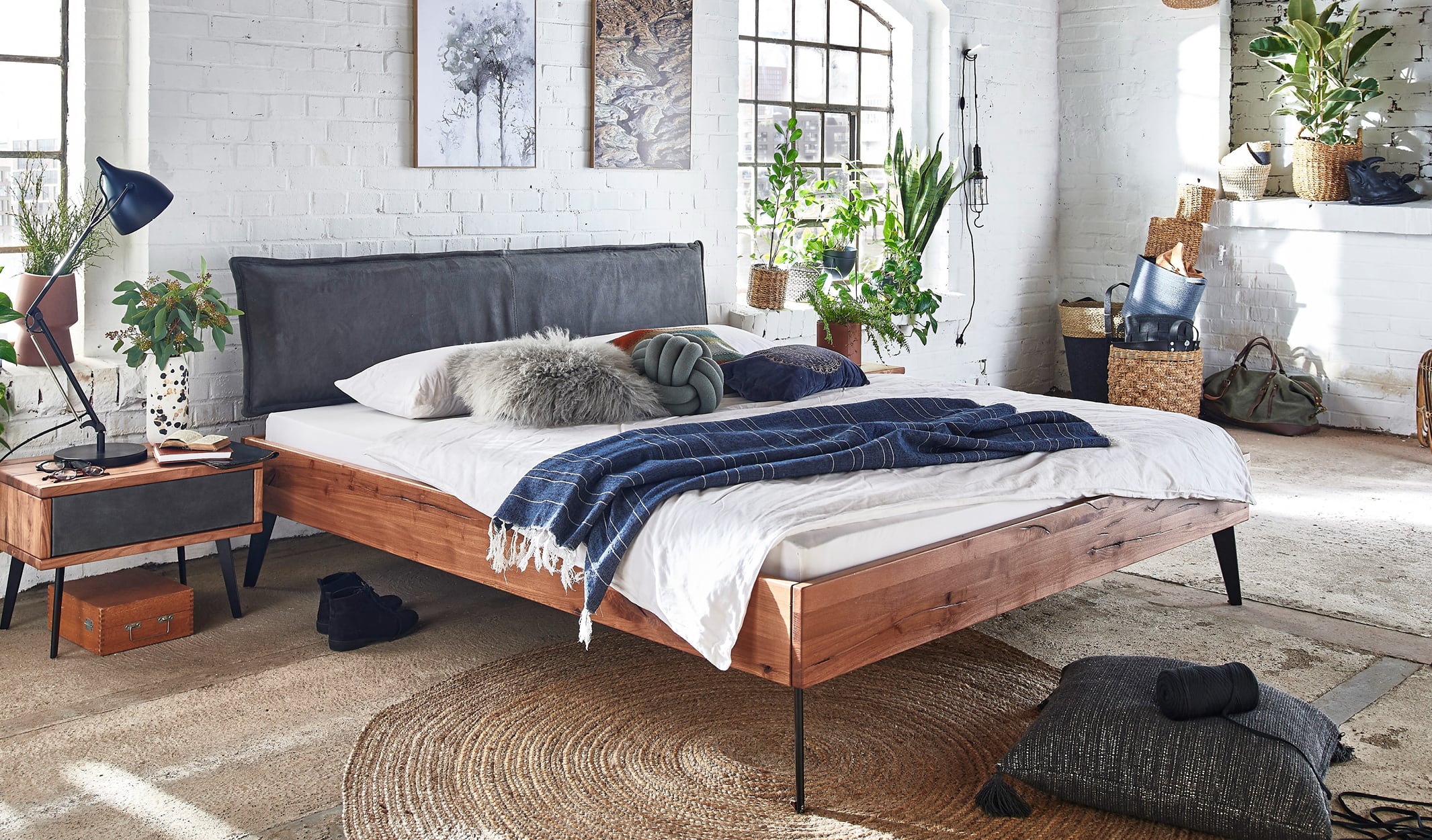 - Große Auswahl an Kopfteilen: ob puristisch in Massivholz (z.B. Baumkante oder Sprossen) oder komfortabel gepolstert in Leder, Cord oder Velours