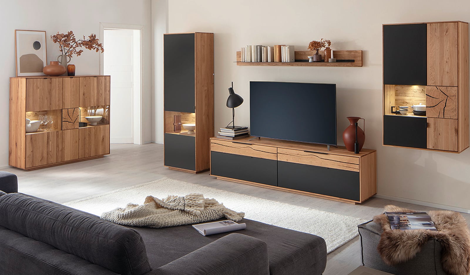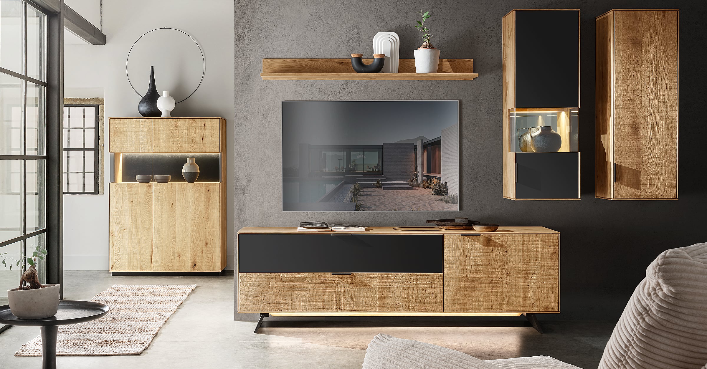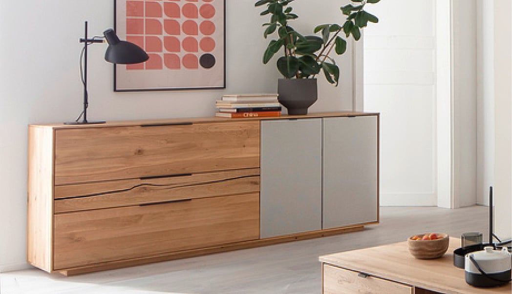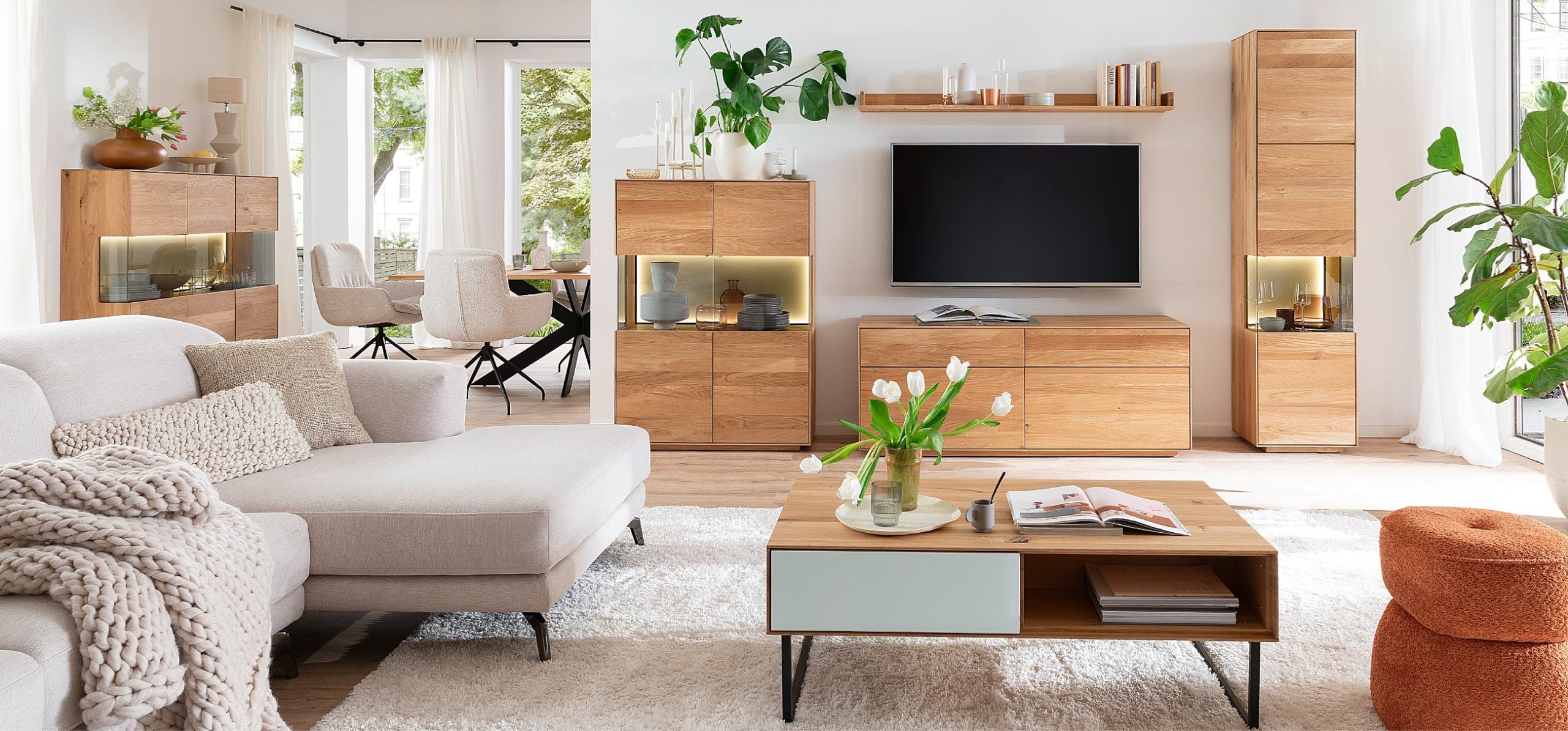 - Sideboards, Vitrinen, Lowboards und mehr – clevere Details wie Schubkästen mit Vollauszügen und Glasklappen