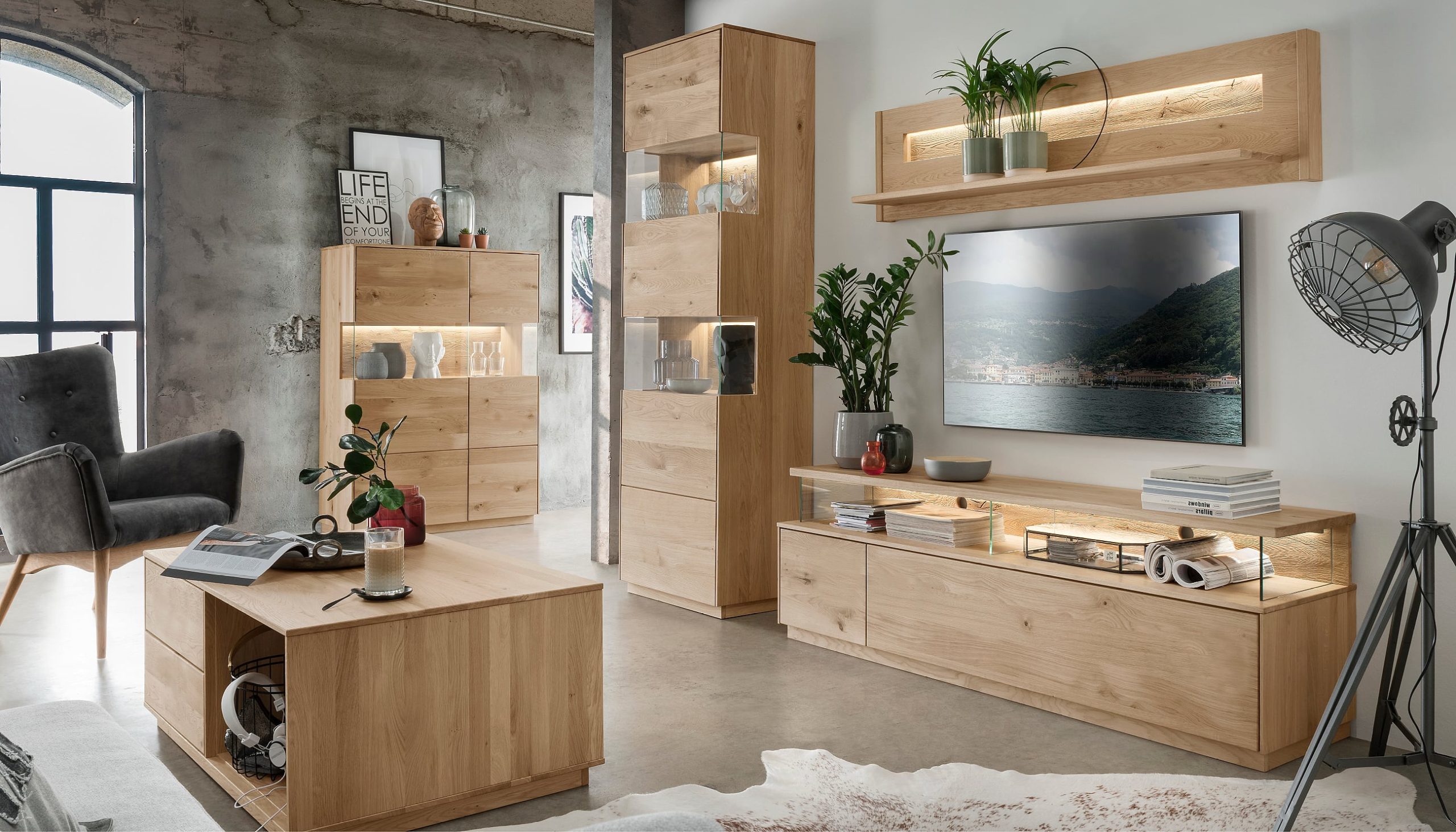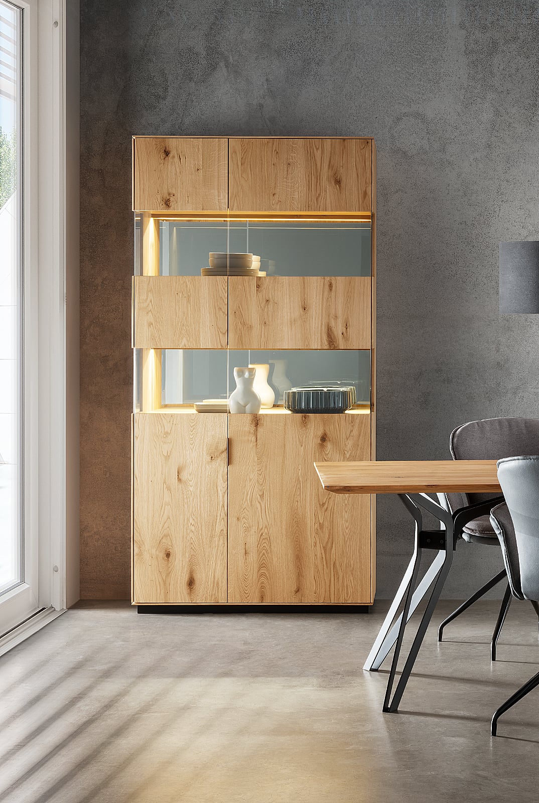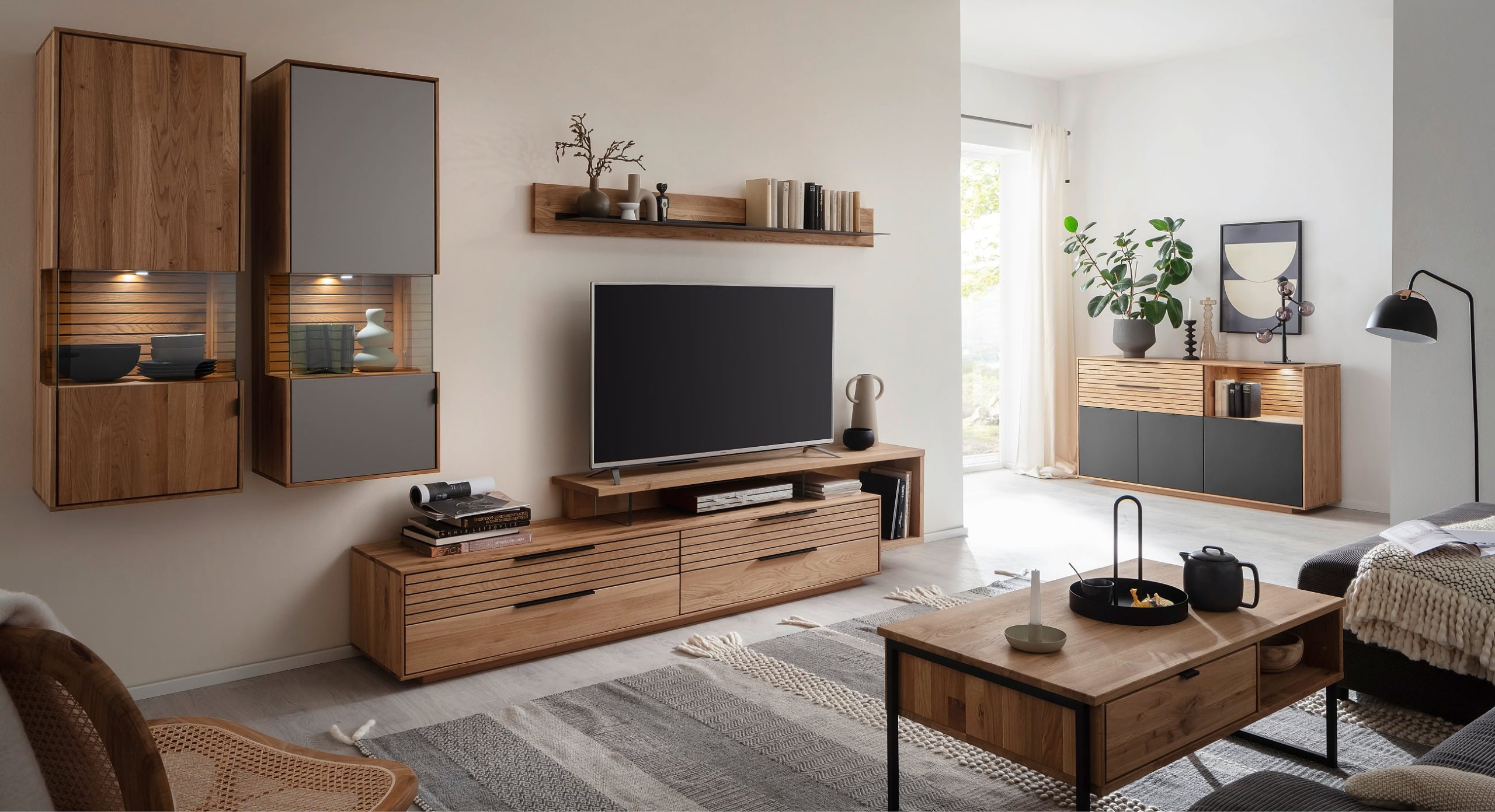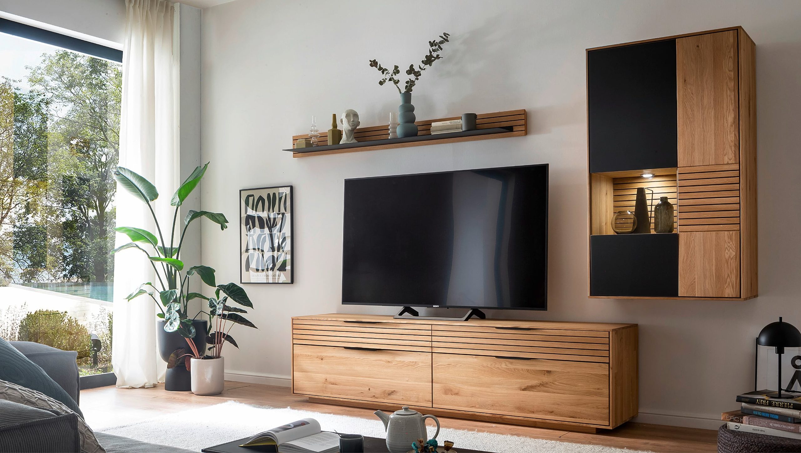 - Sideboards, Vitrinen, Lowboards und mehr – clevere Details wie Schubkästen mit Vollauszügen und Glasklappen